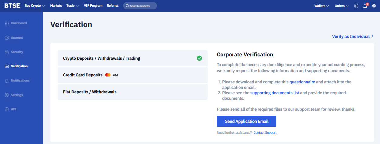 If you’re a company looking to open a corporate account with BTSE to access corporate services.
